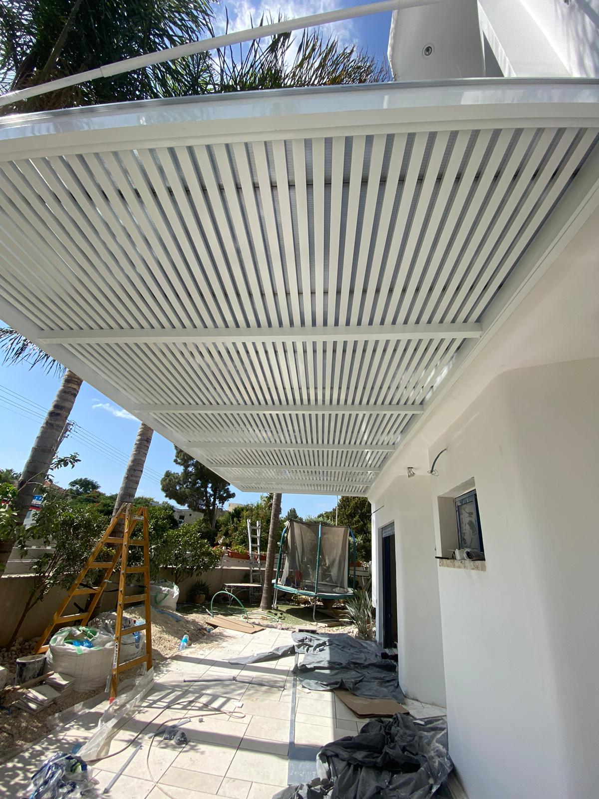 פרגולה חשמלית מתקדמת, נפתחת עם שלט. בנויה מאלומיניום מתקפל או P.V.C מתקדם בשילוב תאורת לד.
